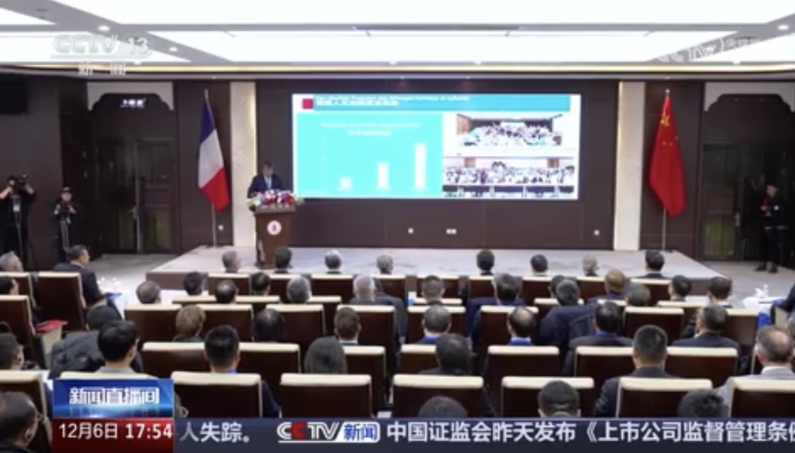 12月5日,中央广播电视总台央视《新闻联播》报道《第二届中法教育发展论坛签署54项合作成果》