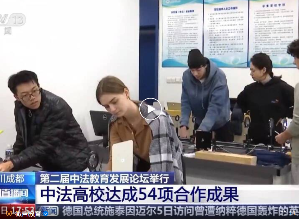 【主持人】昨天,中国教育部与法国高等教育研究和空间事务部在四川成都举办了第二届中法教育发展论坛,达成了丰富的合作成果。中法高校签署了54项合作成果。