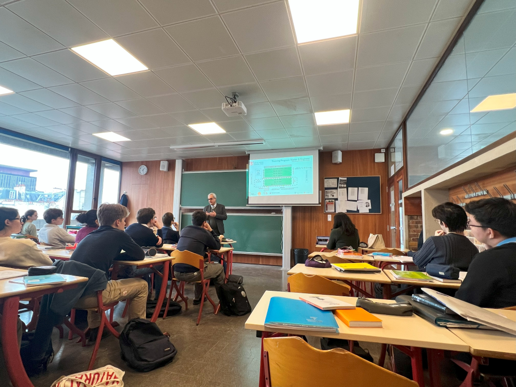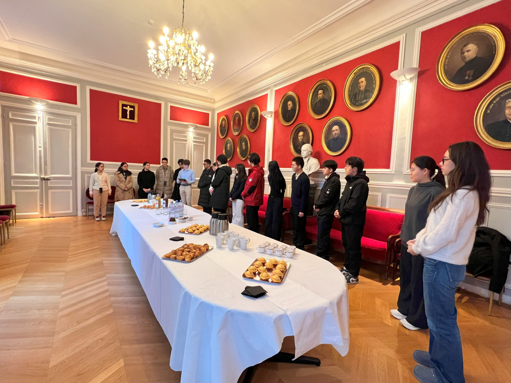 学术交流是本次研学的核心,访学团先后走进法国多所知名院校,深入体验法国特色教育模式,开展多层次中法教育交流。在法国知名私立高中Stanislas中学,访学团进行了为期三天的沉浸式学习,全程参与数学、物理、哲学等多门预科班常规课程,感受法国课堂注重主动思考、理论结合实践的教学特点。校方为每位北航学生配备了中文流利的法国伙伴,中法学生朝夕相伴、探讨学习、分享生活,在提升法语能力的同时结下深厚友谊,也从法国同学身上感受到了自律勤奋的优良品质。