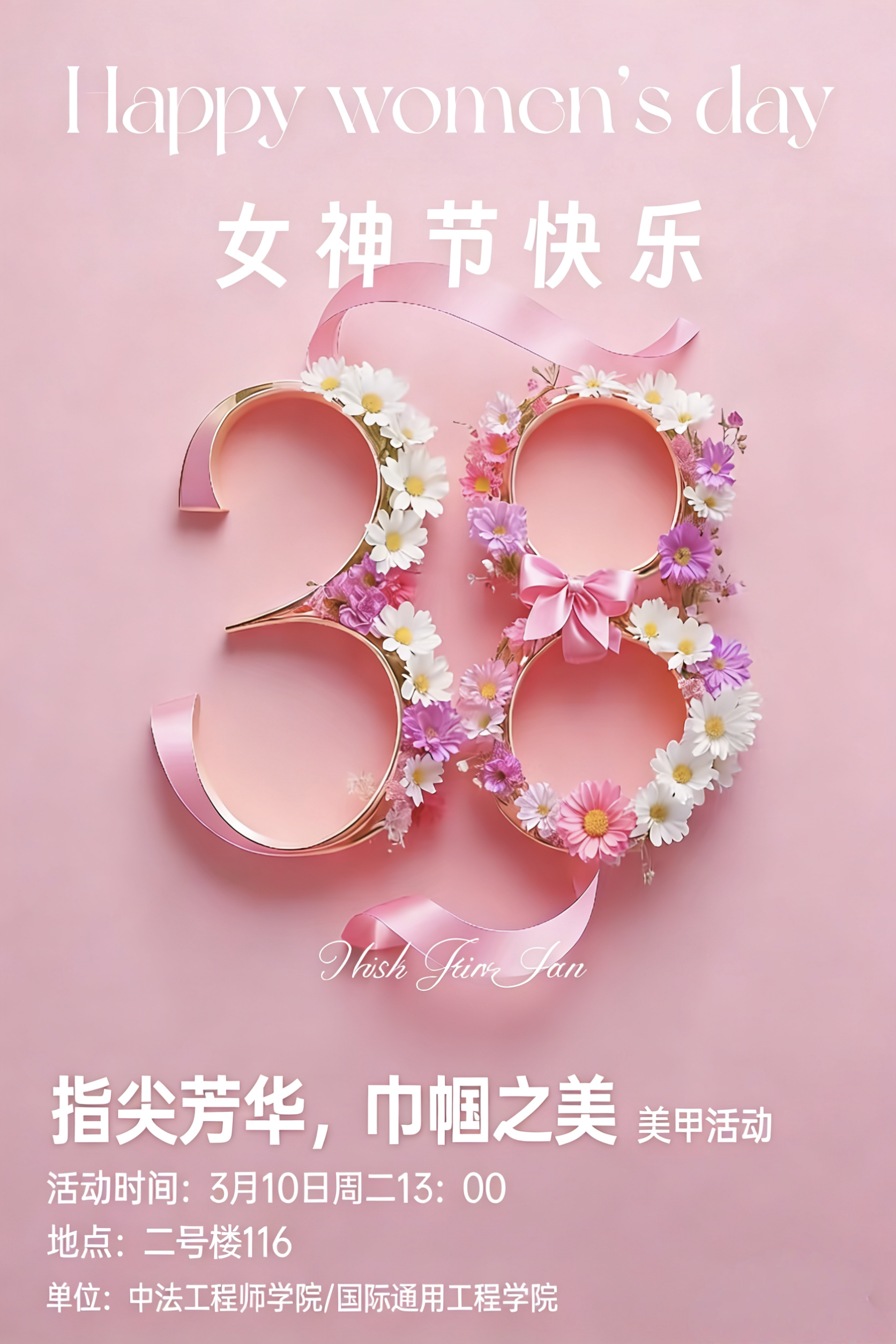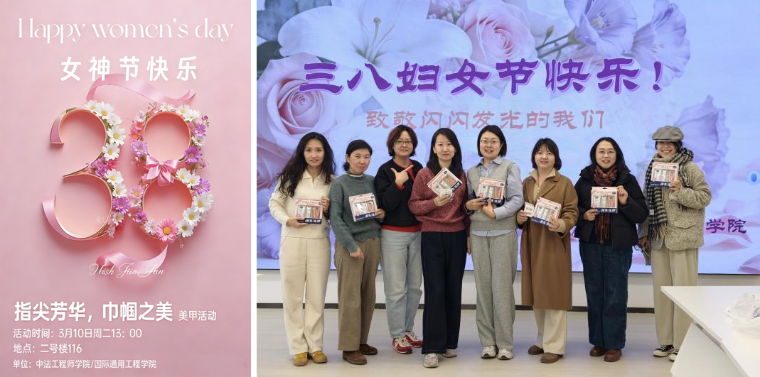 为庆祝第115个“三八”国际妇女节,丰富学院女教职工的精神文化生活,展现新时代女性风采,中法工程师学院/国际通用工程学院工会于3月10日(周二)中午13点,在学院路校区精心组织了一场别开生面的“指尖芳华,巾帼之美”主题活动。