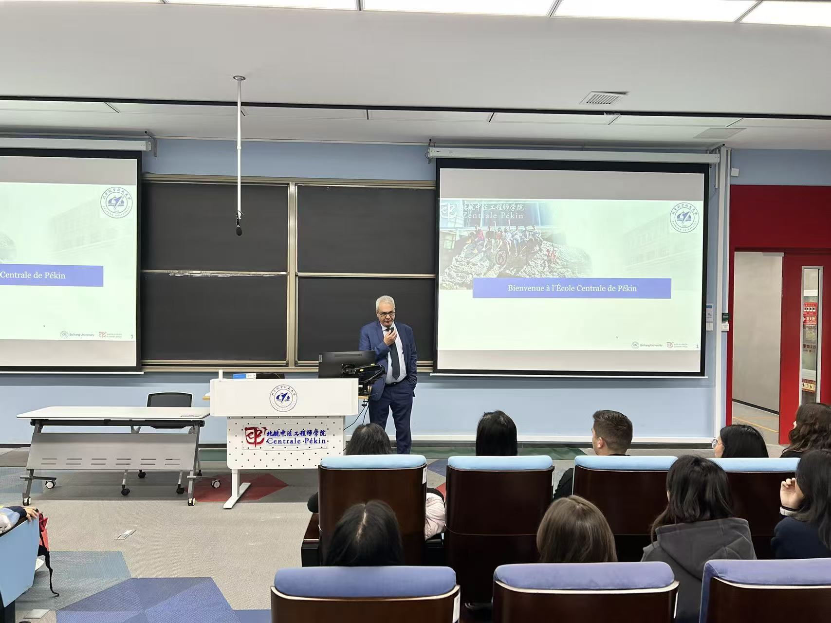 布卡麦教授为到访学生详细介绍了北航的基本情况、中法工程师学院建院背景、发展历程和优势特色,并热情邀请同学们来华留学。