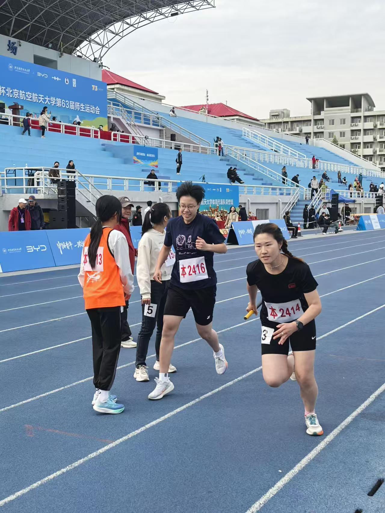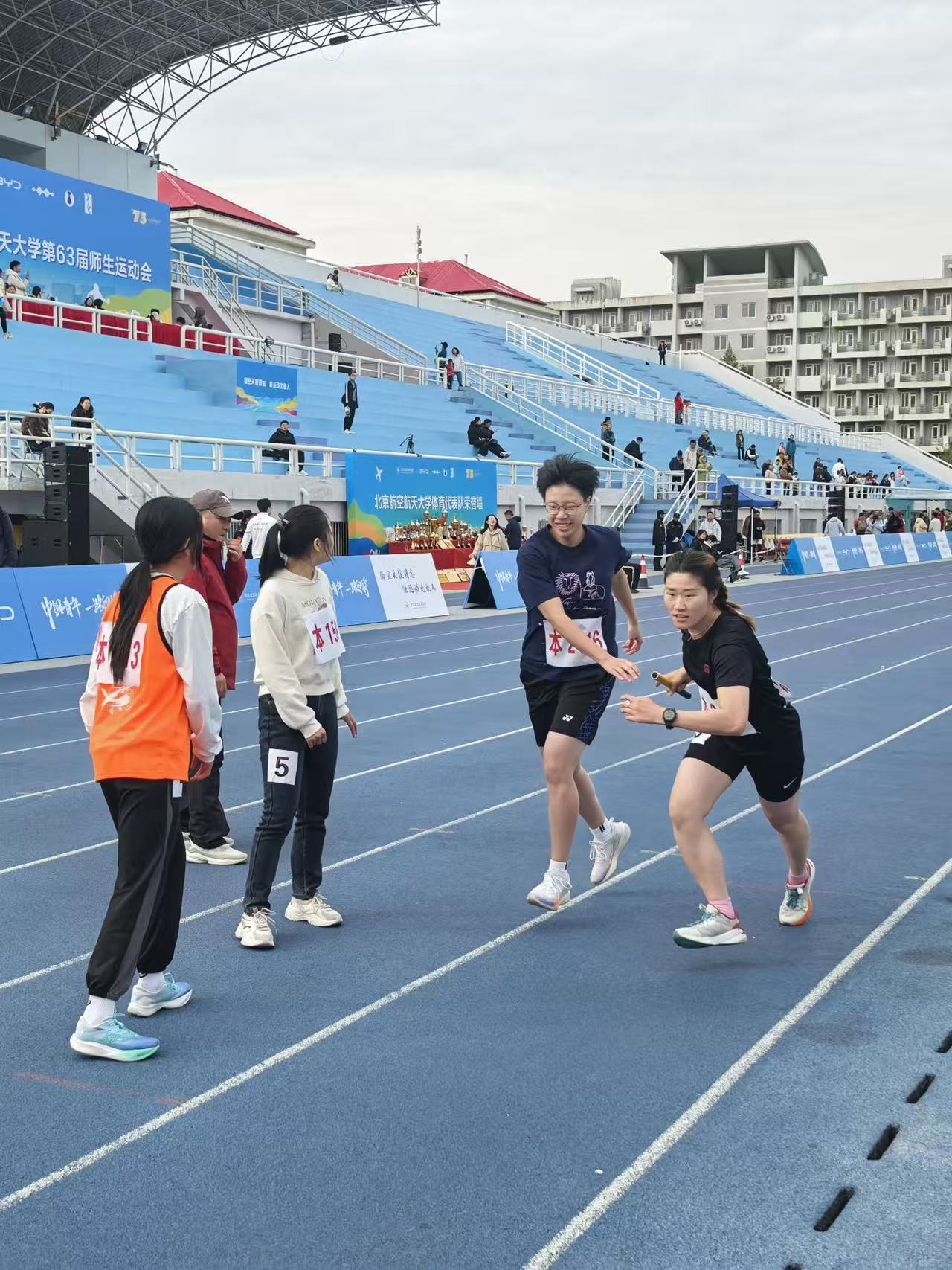 紧张刺激的接力赛中,每一位选手都全神贯注,拼尽全身力气奔跑;接力棒的每一次传递,都是信任的交接,更是团结与拼搏精神的生动体现。